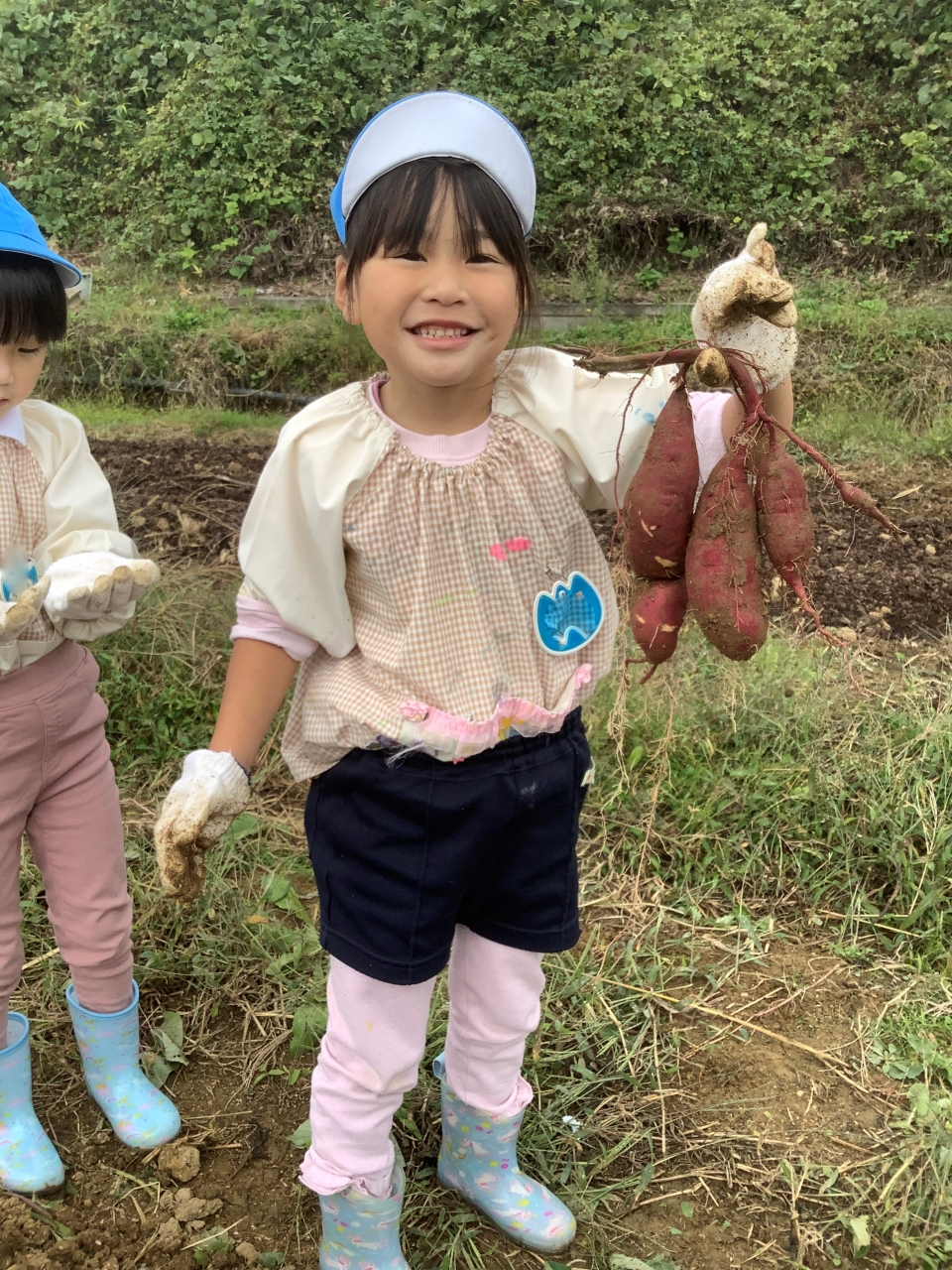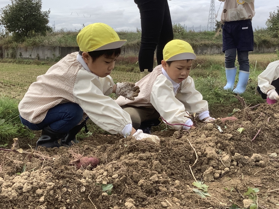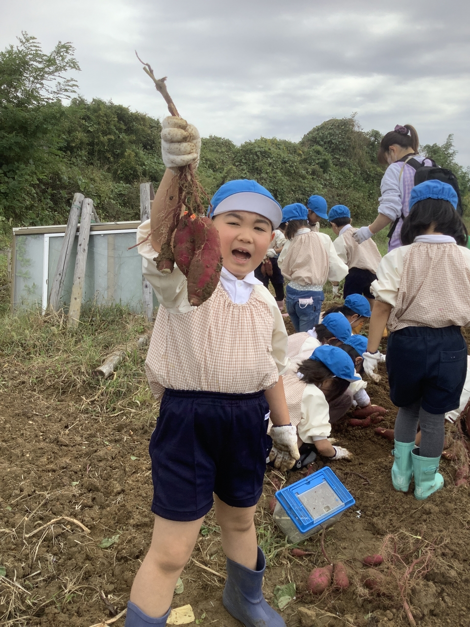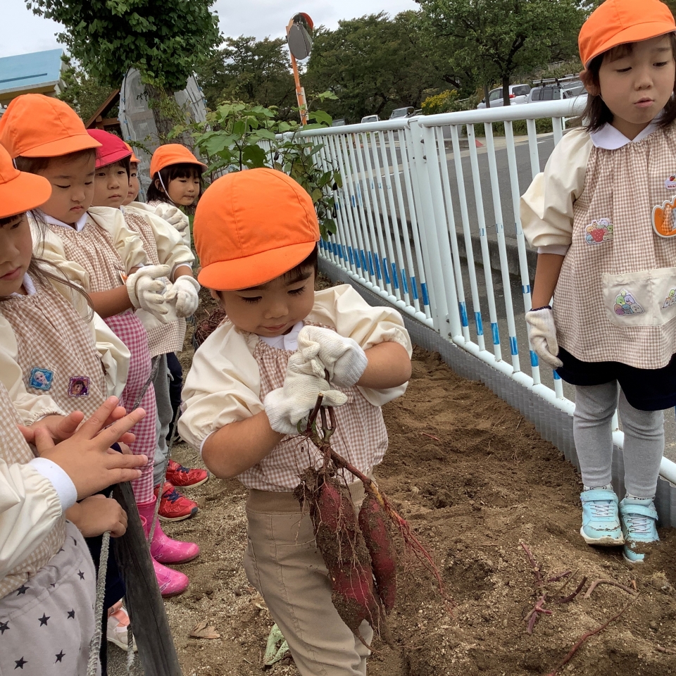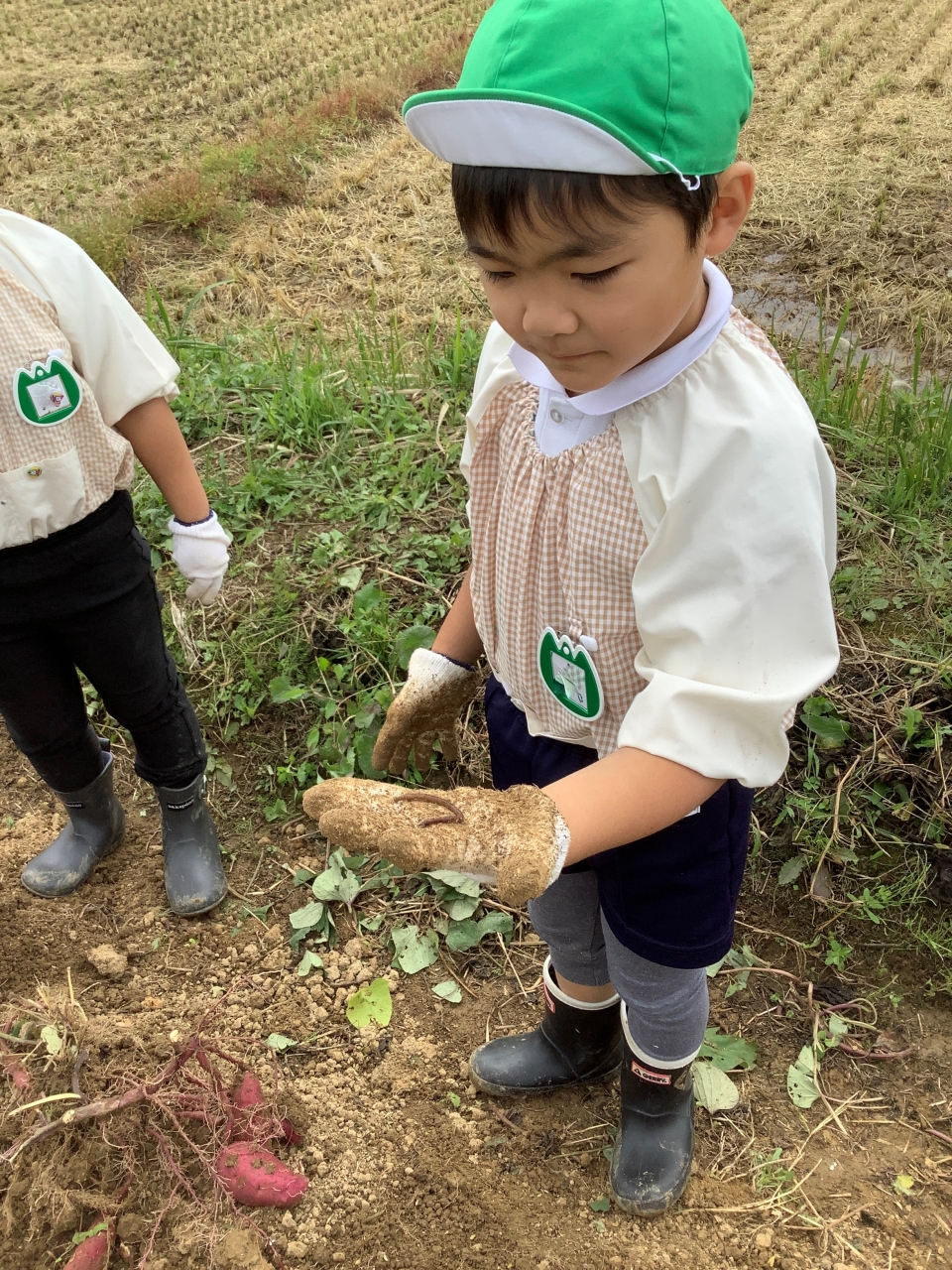 年少児は幼稚園の畑でさつまいも掘りをしました(*^▽^*)