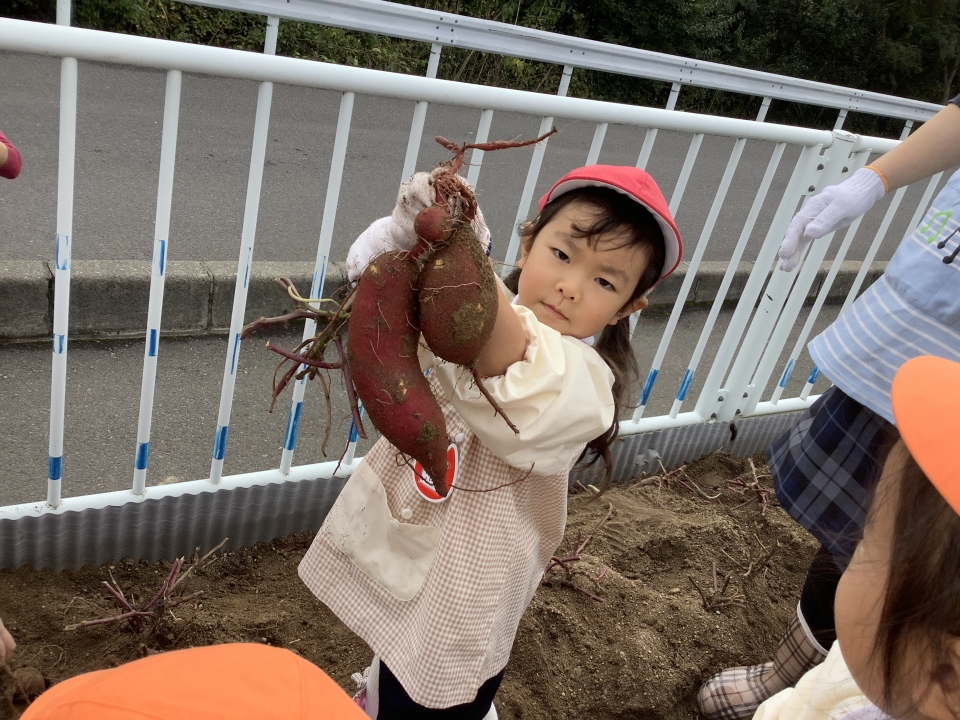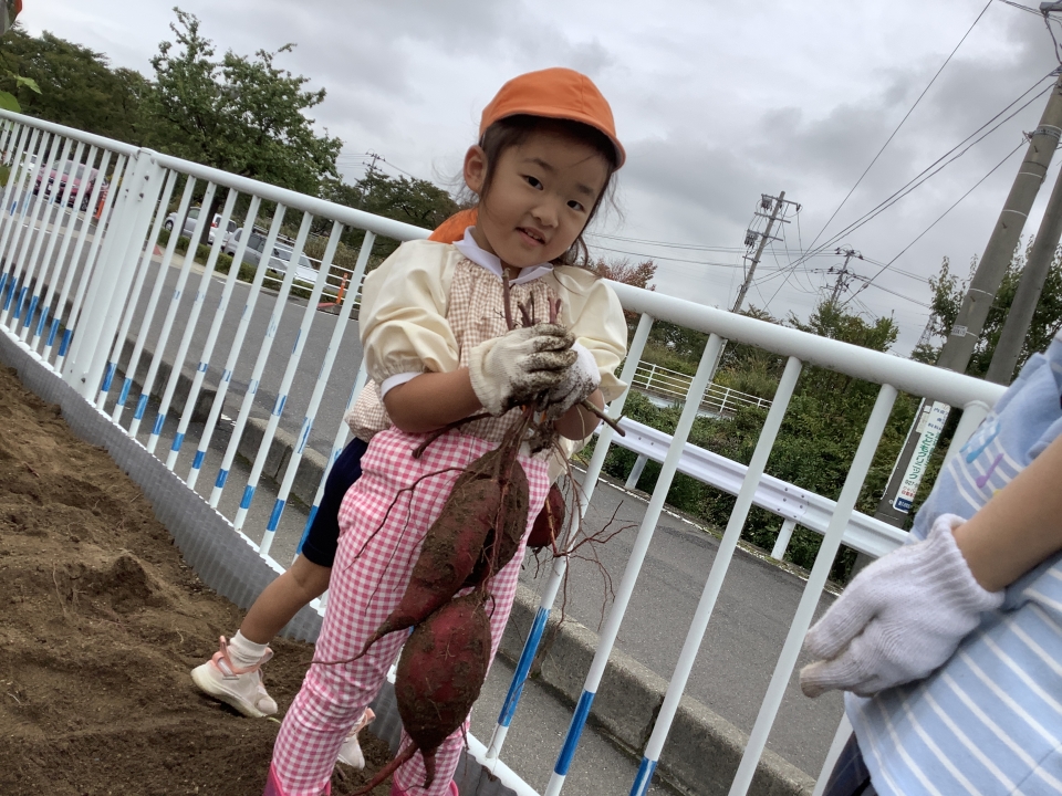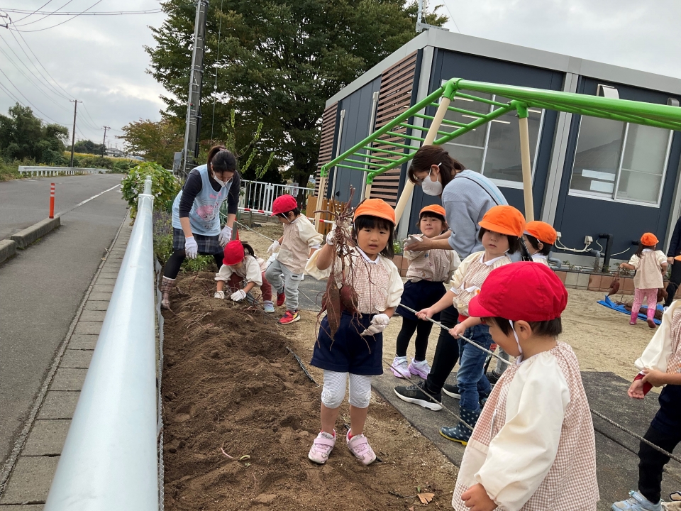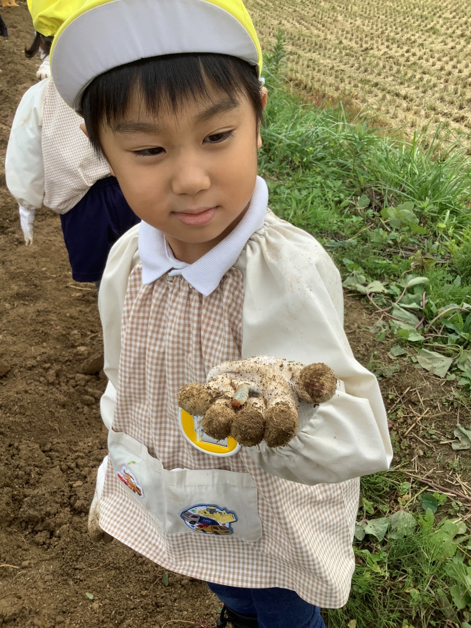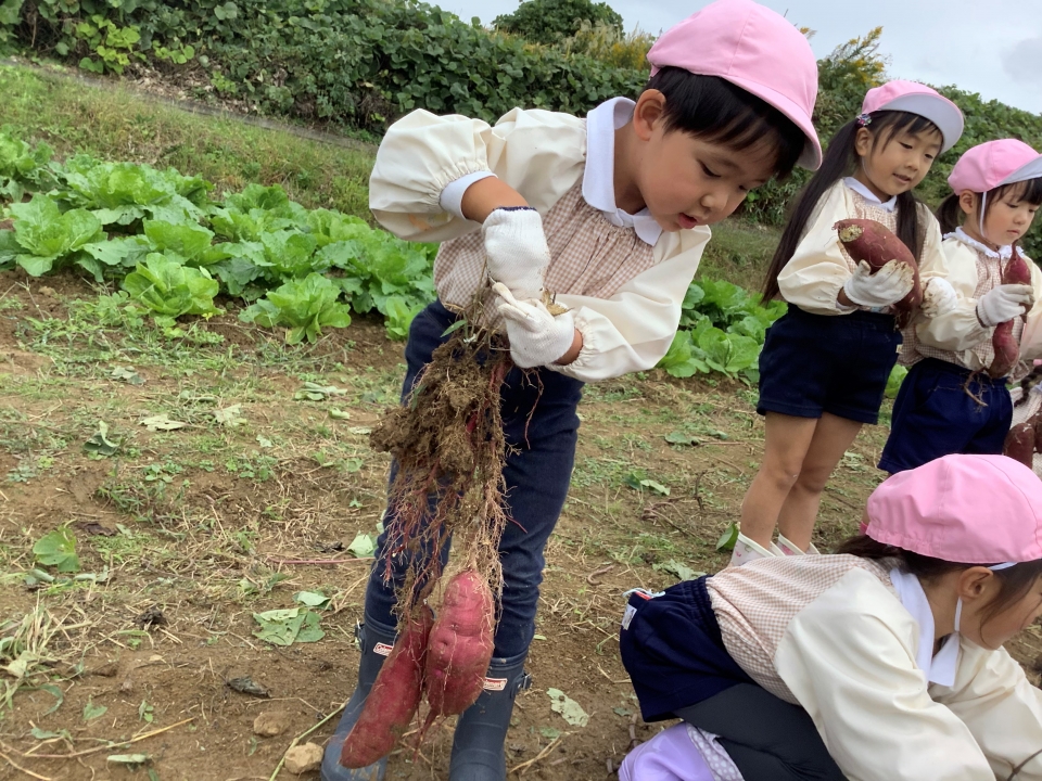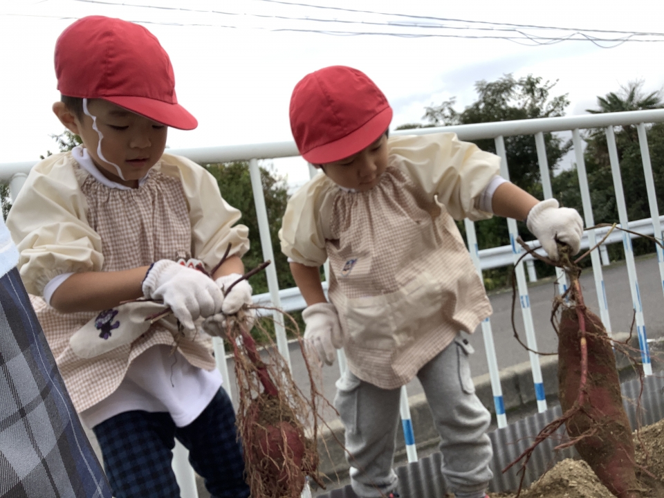 年少児は幼稚園の畑でさつまいも掘りをしました(*^▽^*)