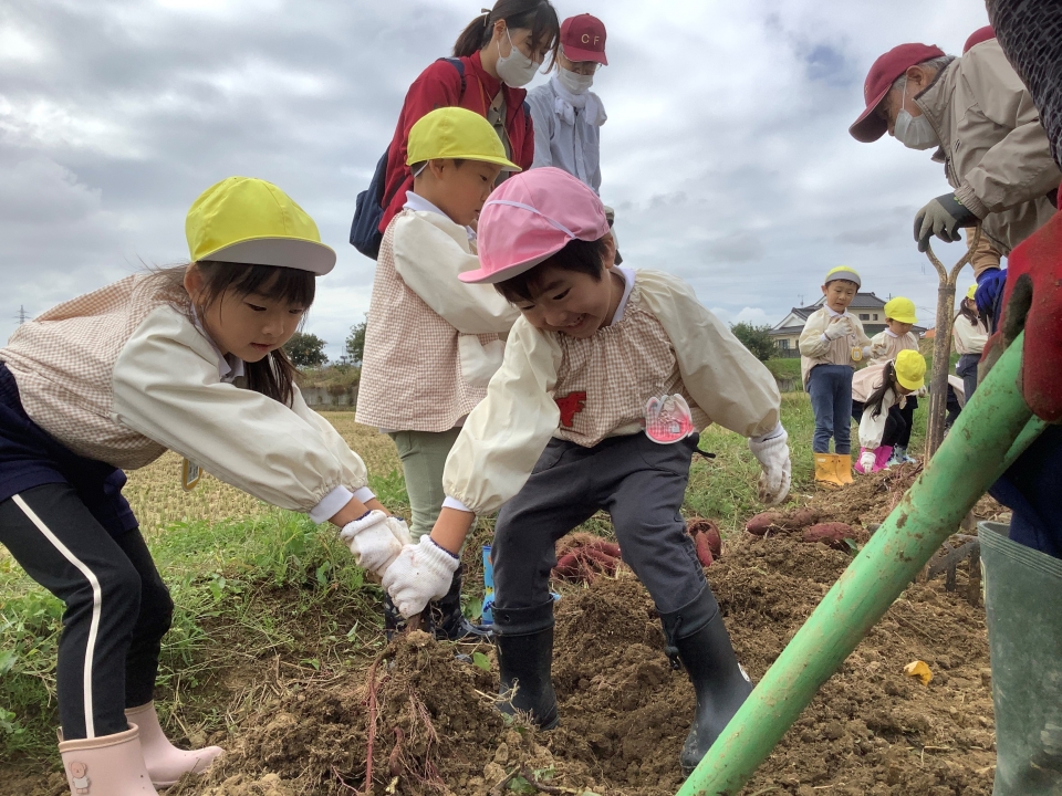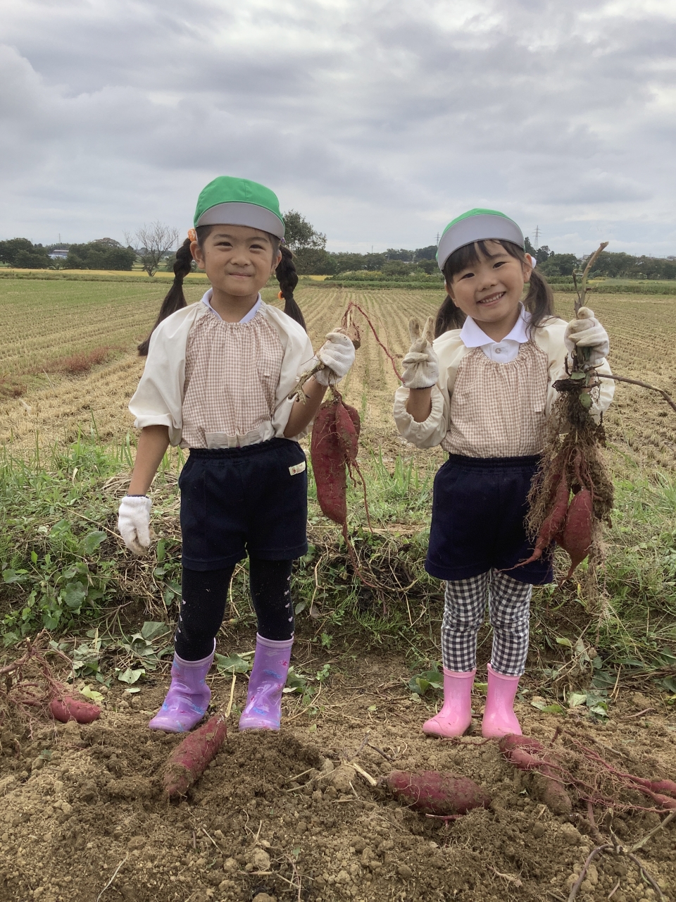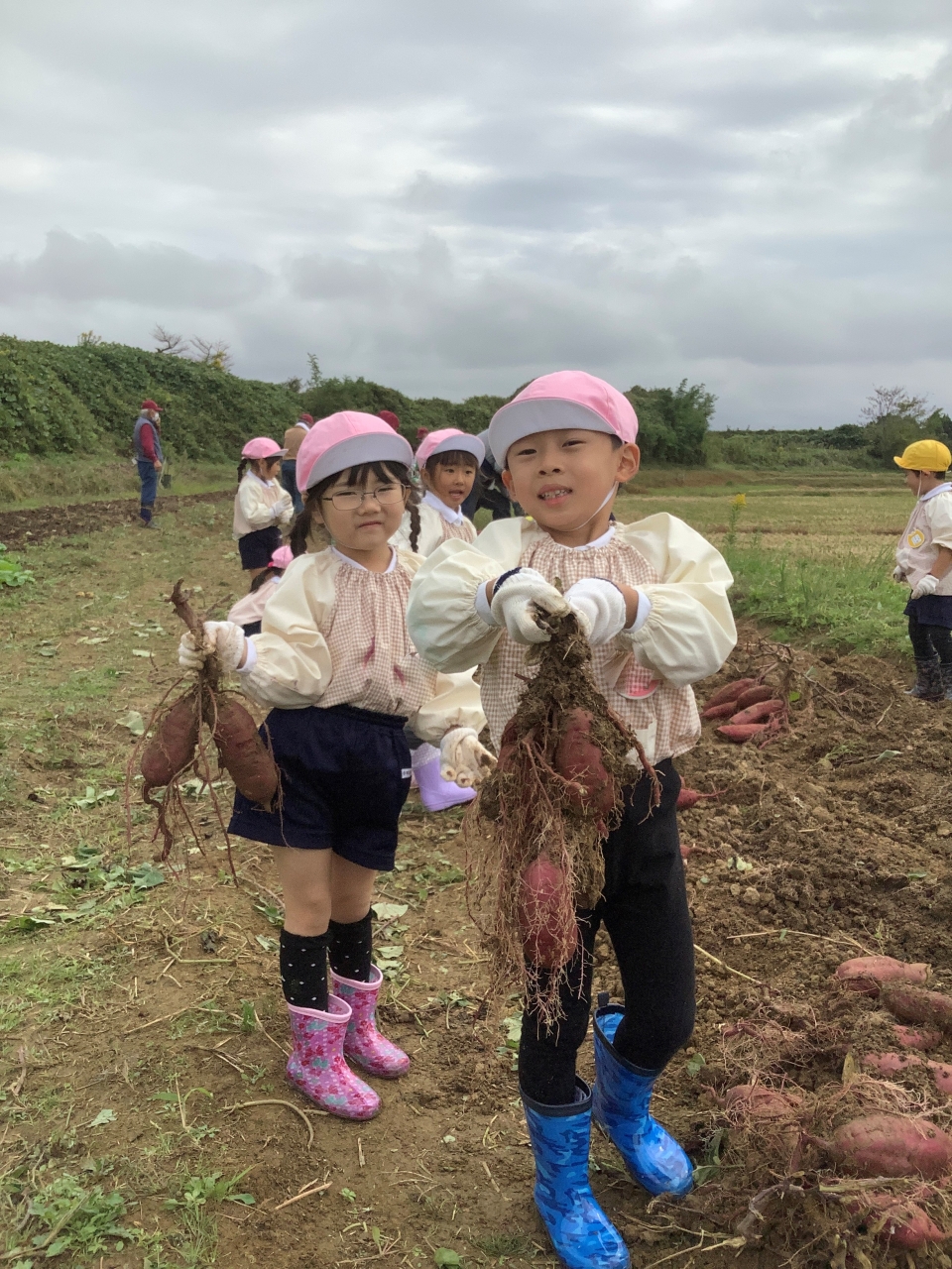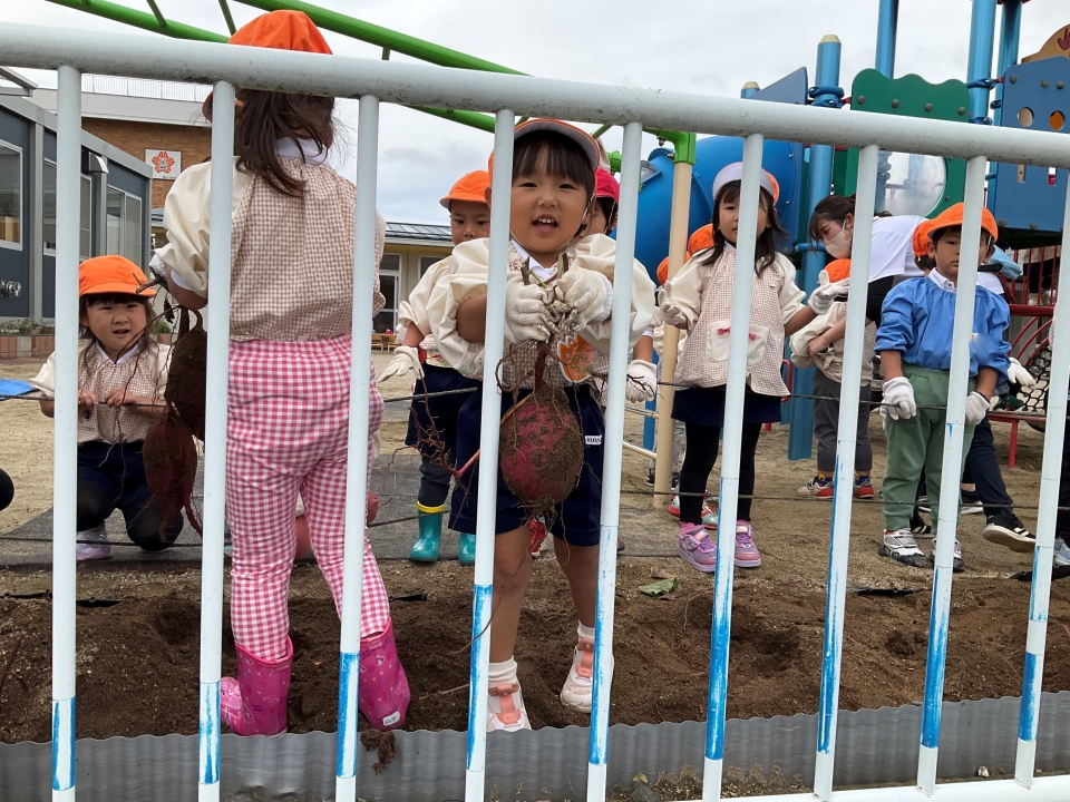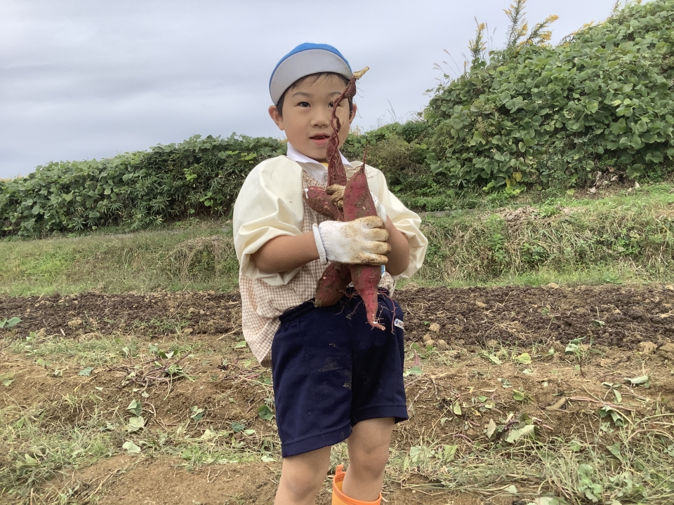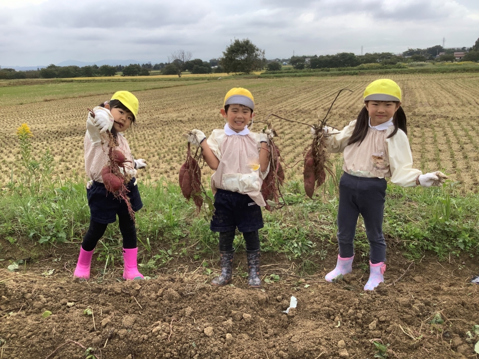 年少児は幼稚園の畑でさつまいも掘りをしました(*^▽^*)