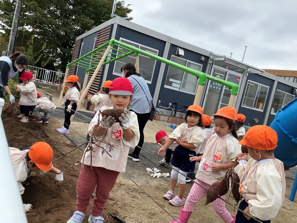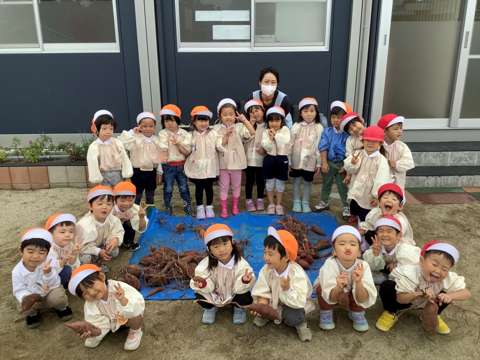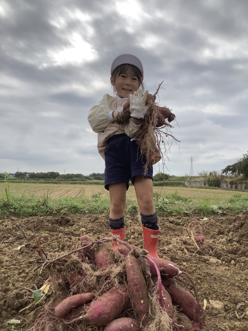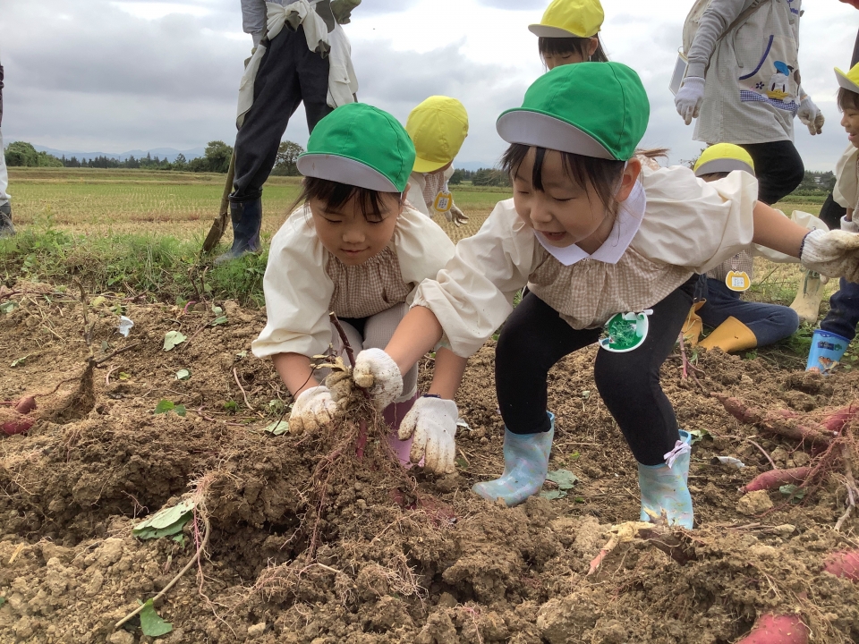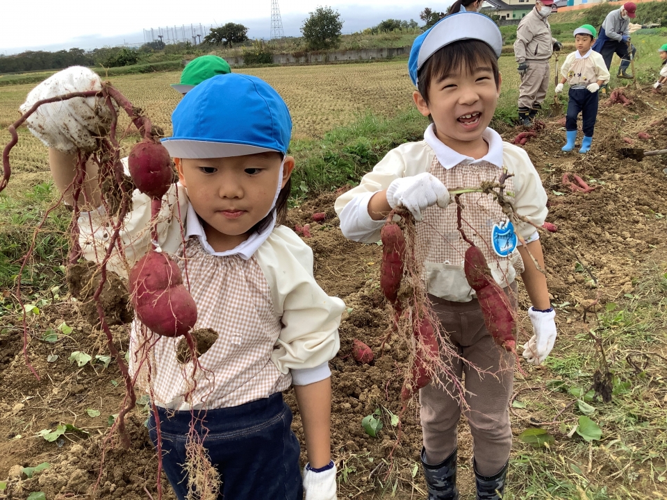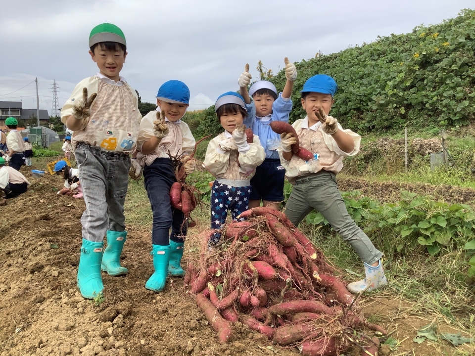 年少児は幼稚園の畑でさつまいも掘りをしました(*^▽^*)