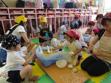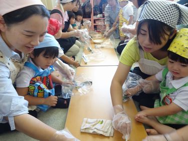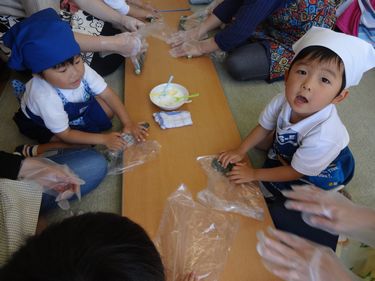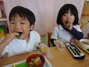年少組 きゅうりをゴロゴロして、漬物を作りました。