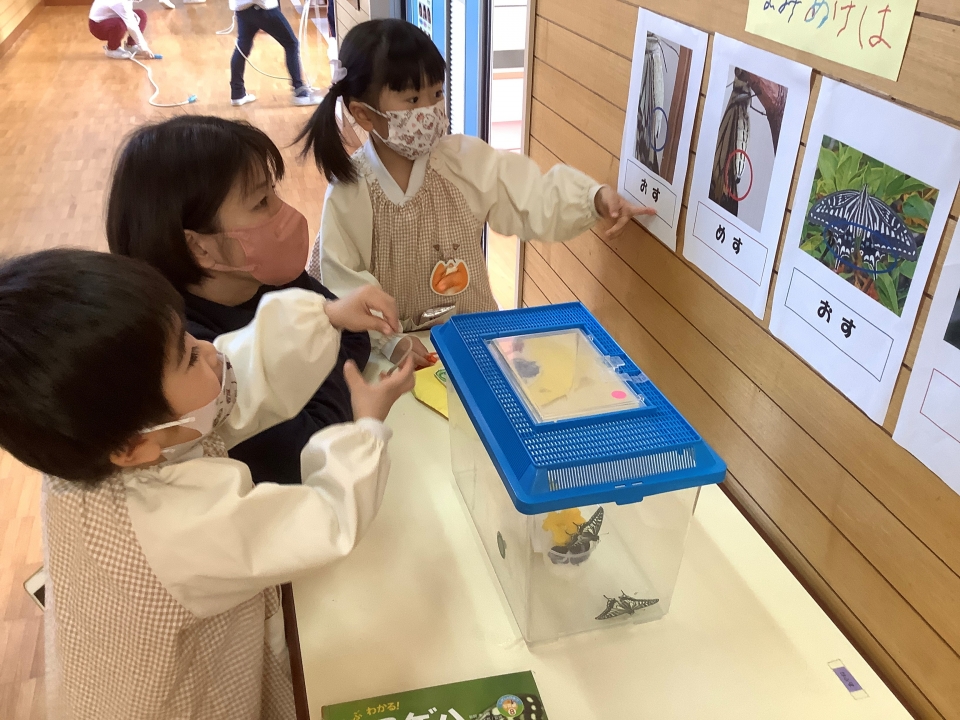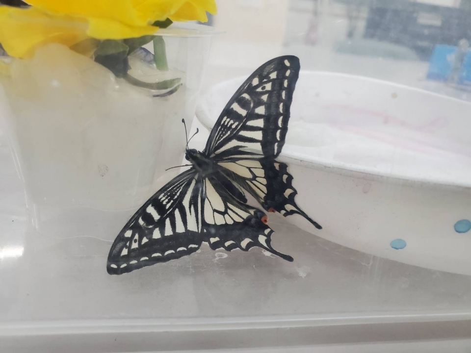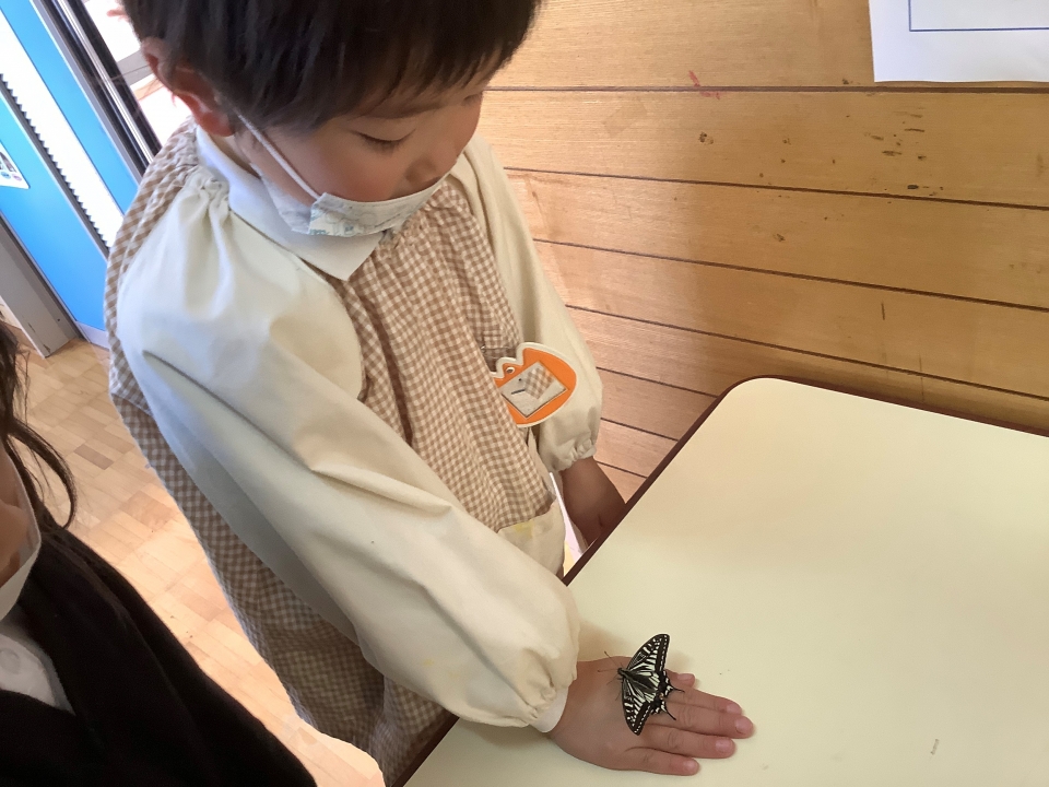 昨年からはな組で飼育していたアゲハ蝶のサナギが羽化しました!!