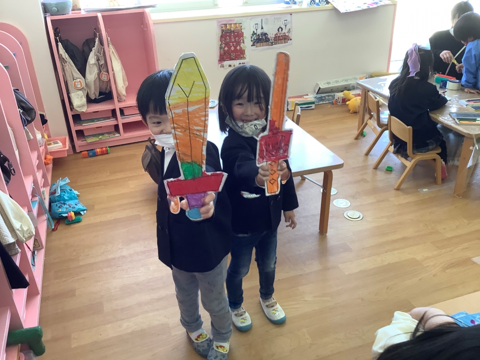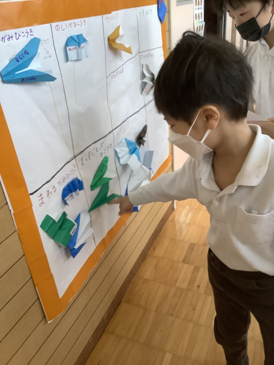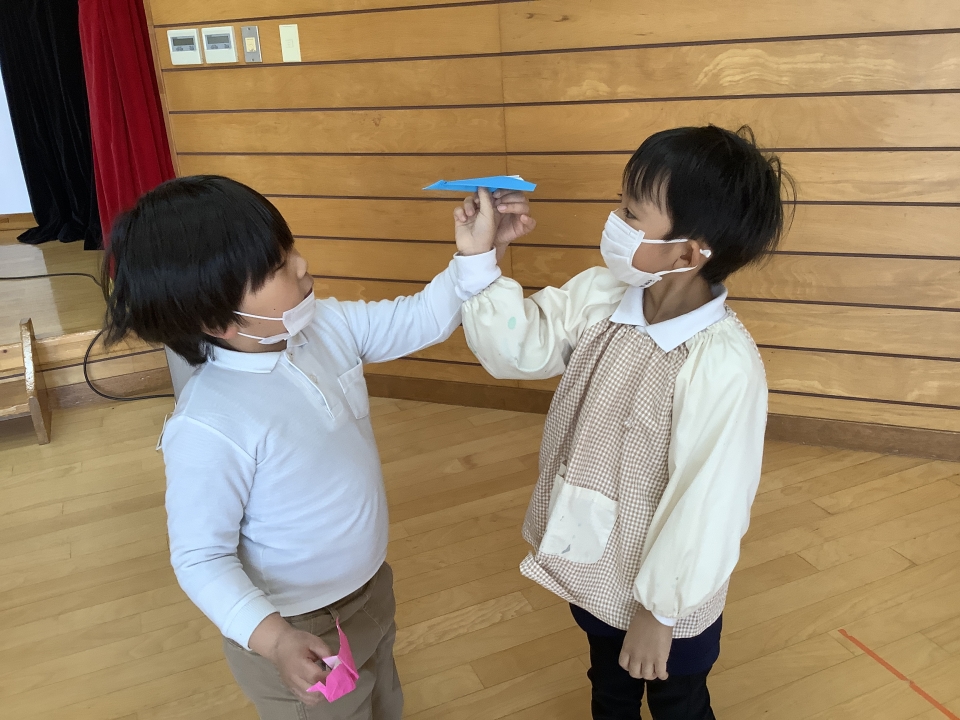 年長児で紙飛行機がブーム!!いろいろな折り方を研究して飛ばしています(*^▽^*)