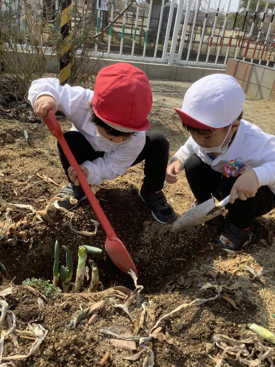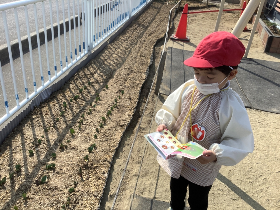 最近は暖かくなってきたので虫探しをする子が増えてきました(^○^) チュウリップの芽も顔を出していますよ♪