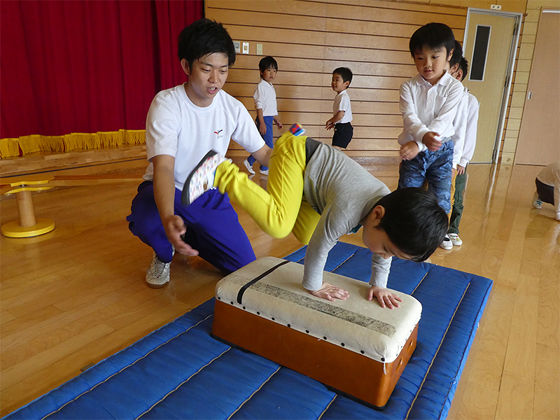 幼児活動研究会の指導をいただき、楽しく体力づくりをしています。