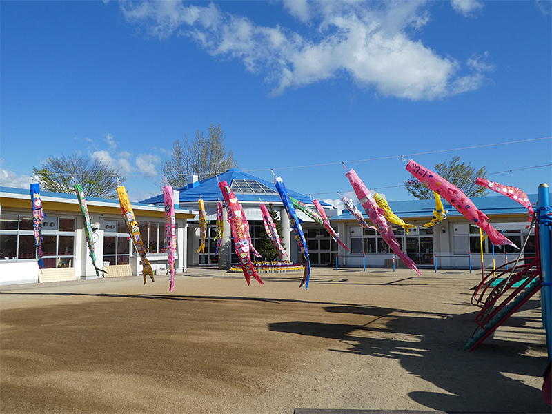 教育目標は「つよいからだ、うつくしいこころ、おおきなのぞみ、なかよくあそぶみらいの子ども」。