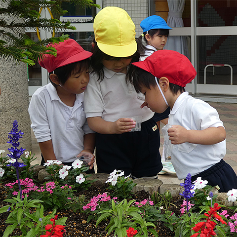 また、幼児期は生涯に通ずる人格形成の大切な時期であることをふまえ、学校教育法第22条および第23条に従って幼児を保育し適当なる環境を与え、その心身の発達を助長します。